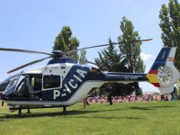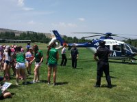 Y dentro de los actos programados en la clausura hemos tenido la suerte de disfrutar entre otras muchas cosas ,de una magnifica exhibición del trabajo que realizan las unidades caninas del CNP. Hemos conocido de primera mano cómo la policía adiestra y trabaja con los perros para que puedan desempeñar diferentes trabajos; detección de explosivos, drogas y poder encontrar personas desaparecidas en terremotos u otros desastres naturales. Pero la sorpresa mayor ha sido cuando de repente sobre nuestras cabezas ha pasado volando uno de los muchos helicópteros de los que dispone el CNP, realizando varias pasadas y aterrizando después en la cancha de prácticas del campo de golf para que todos pudiéramos verlo de cerca y poder realizarnos una foto de familia y guardar así el recuerdo de todo lo vivido en esta jornada de clausura, esperamos que los niños que aún están por venir, puedan aprender y disfrutar tanto como nosotros.