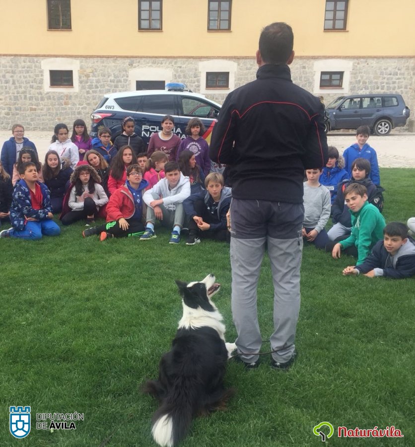 Nada más salir del aula nos estaban esperando los “Héroes de 4 Patas “, Una Organización no gubernamental que nace en Enero del año 2015 y que está creciendo gracias a la ilusión de un pequeño grupo de personas amantes de los animales, pertenecientes a Policía Nacional, que siendo conscientes de las carencias existentes en España en lo referente a la jubilación de los perros de trabajo utilizados por las distintas Unidades Caninas, deciden crear esta organización sin ánimo de lucro, con el objetivo fundamental de ofrecer una retirada digna y de calidad a los “Héroes de 4 Patas“ que durante gran parte de su vida han estado al servicio de la Sociedad. Con esta actividad quieren darnos a conocer la historia y la labor tan importante que realizan a diario, tanto guías como perros, y finalmente pretenden conseguir que dejen de ser una simple herramienta de trabajo y se les valore como auténticos compañeros.